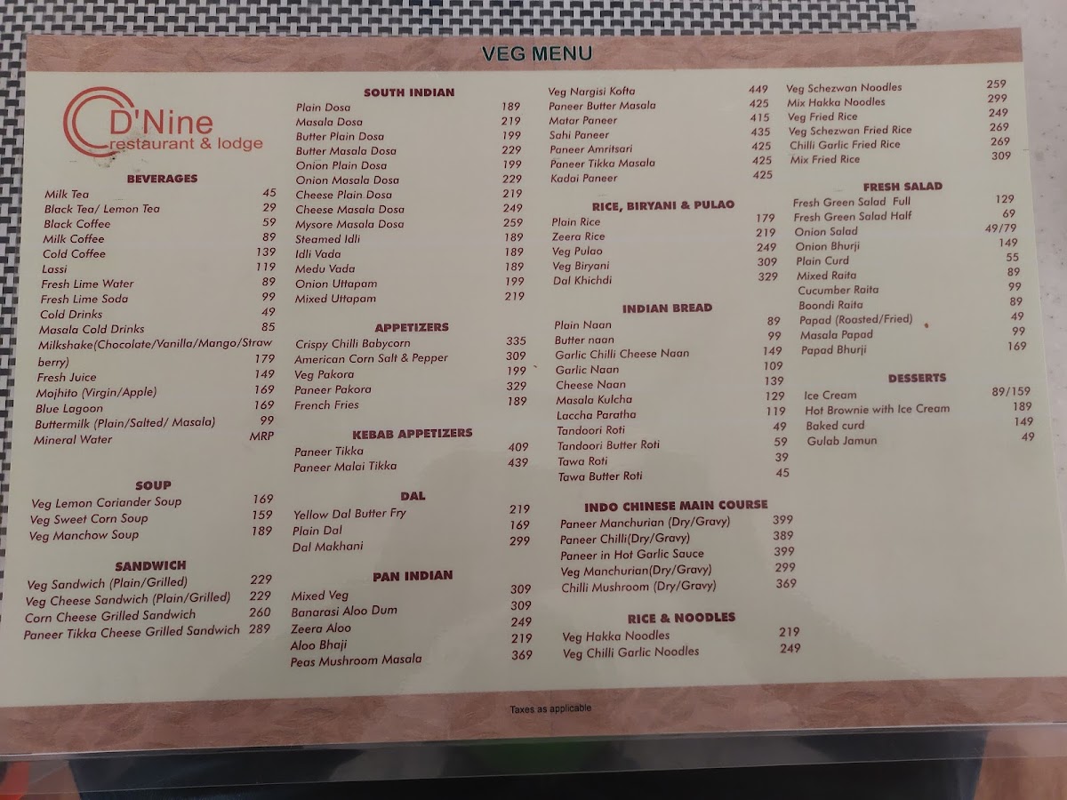 “ Had an excellent dining experience at D’nine Restaurant! The food was simply outstanding – fresh, flavorful, and beautifully presented. The ambience is cozy and welcoming, making it an ideal spot to enjoy a meal with family or friends. The service was just as impressive – polite, quick, and very attentive. What I really appreciated is that they can also arrange Jain food options, showing their thoughtfulness and care for different preferences. All in all, a perfect combination of delicious food, lovely ambience, and top-notch service. Definitely a place I’d love to visit again! ”